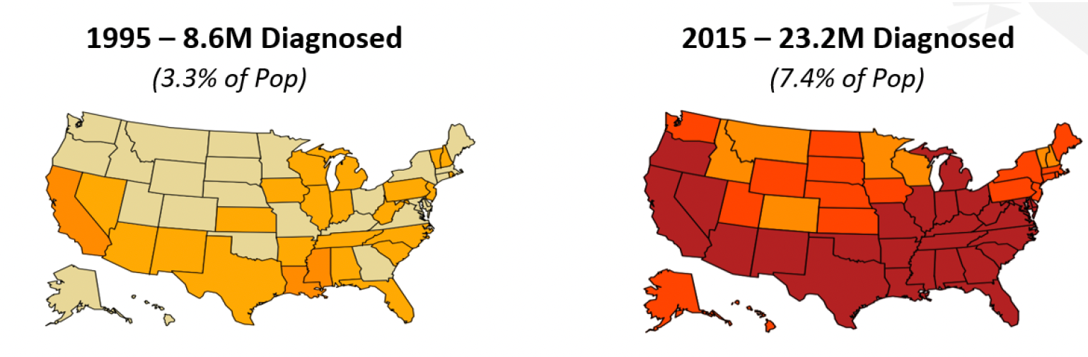 Heat Map of US Population with Type-2 Diabetes (red is worse)
