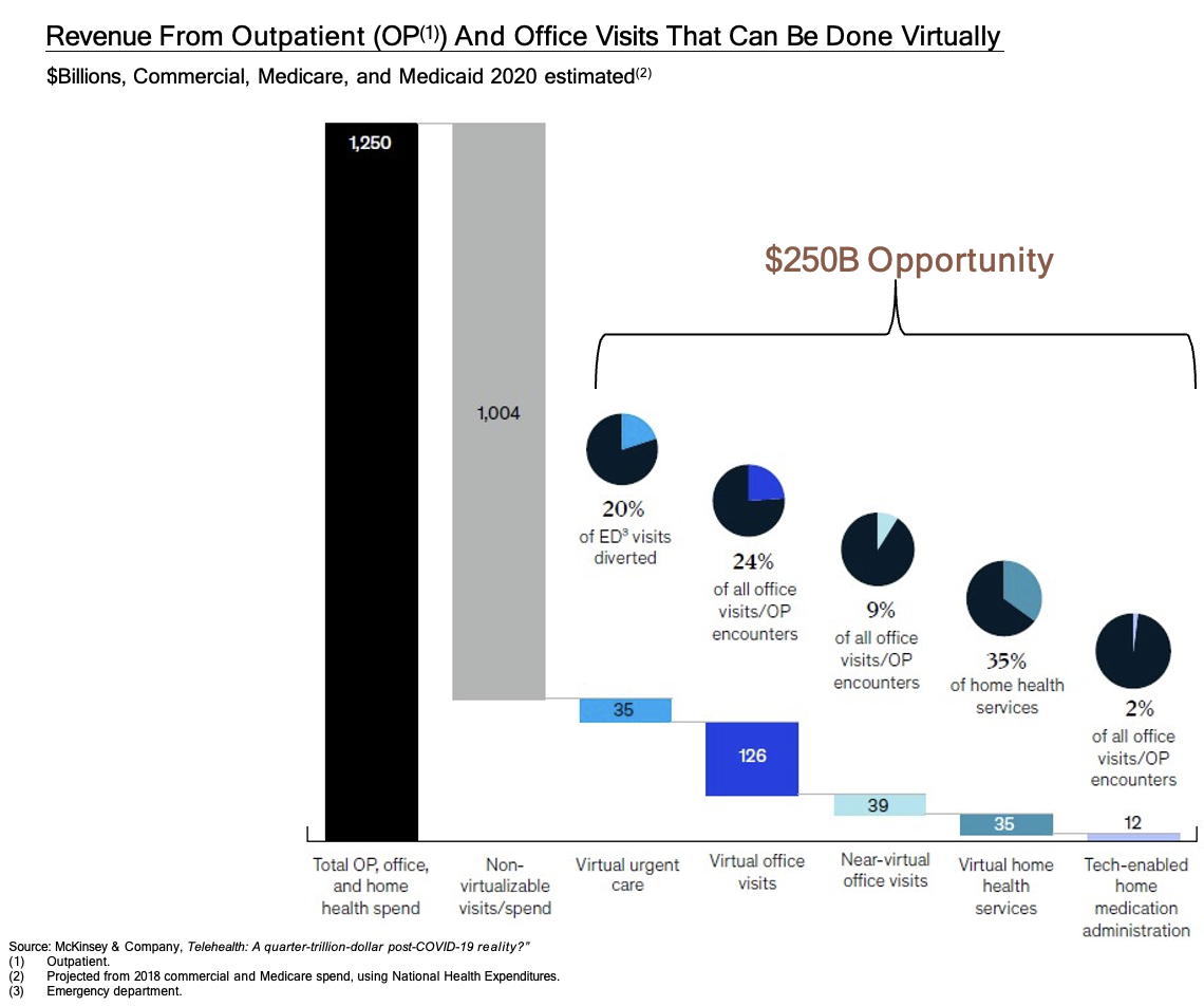 $250B worth of spend is low-hanging fruit for Telehealth players today. That's a lot of revenue up for grabs to support some of the lofty valuations we're seeing out there.