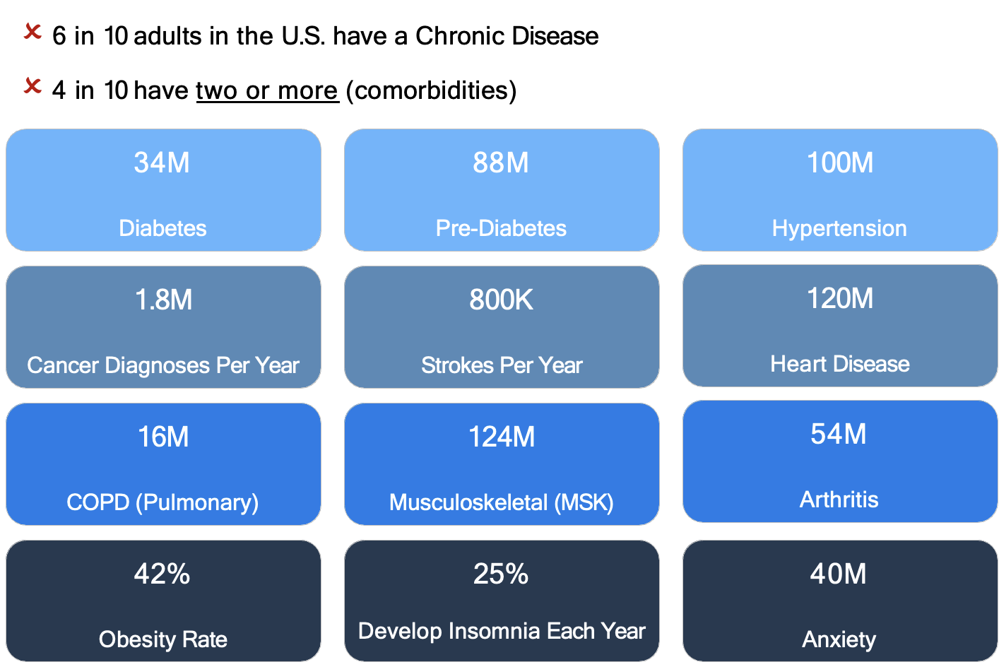 The below is one of the craziest charts I've ever seen and best illustrates the crisis we have with Chronic disease in the US.