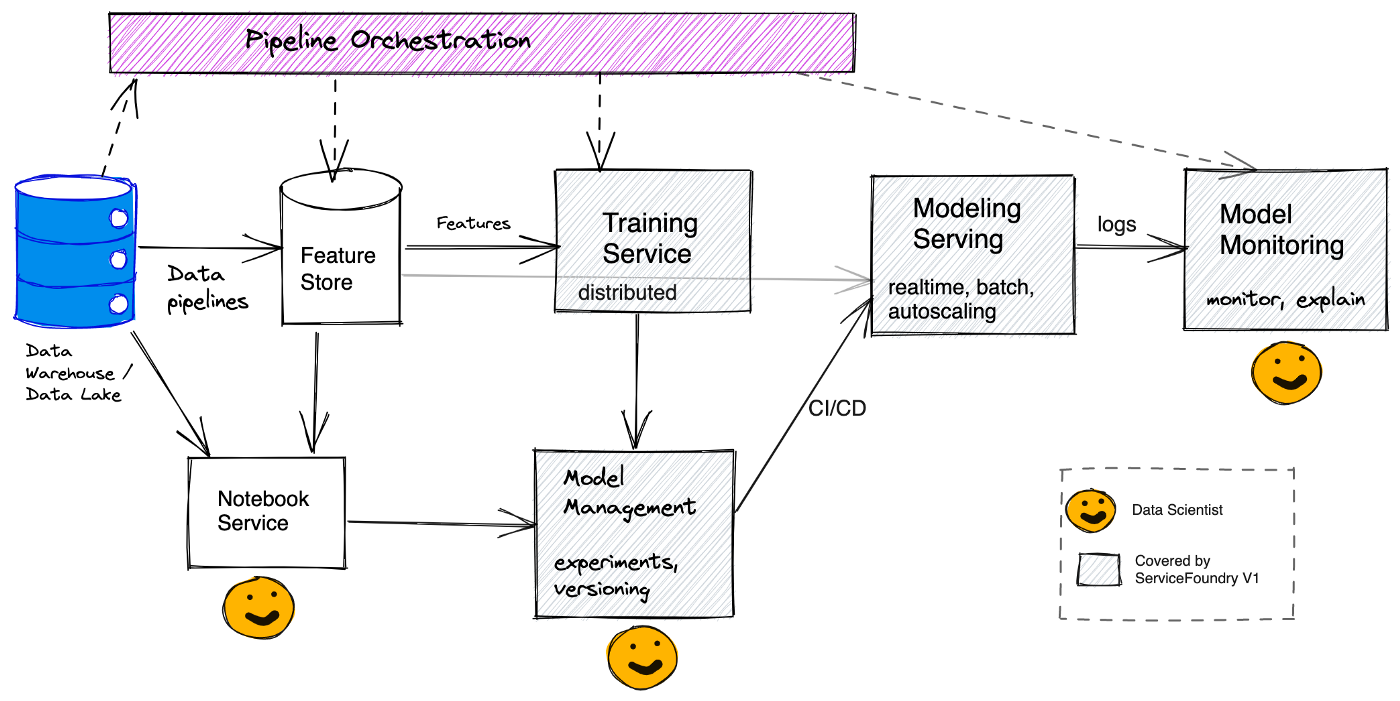 TrueFoundry's vision for its v1 MLOps platform is to provide a seamless MlOps platform that focuses on the post-model building pipeline and makes it really easy for data scientists to deploy, monitor, and retrain their models. From their blog post on their Vision they illustrate where they can save a Data Scientist time (gray areas are where they help speed up the process):