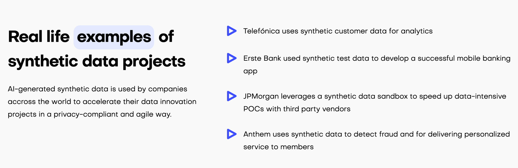 Below are a few examples of how leading synthetic data companies are servicing their customers.